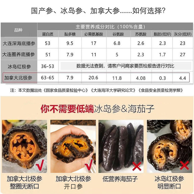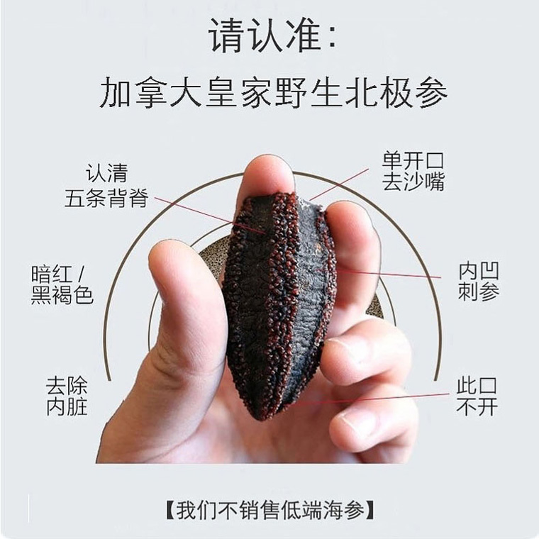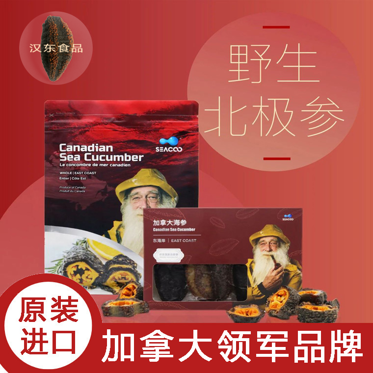 品牌【老兵创业】加拿大野生北极海参原装进口纯淡干货40~60头整参筒参非即食 北大西洋纯淡干SEACOO北极参~加拿大海参顶级品牌,纯野生、纯天然、无污染、无添加。加拿大食品检验局CFIA标准。加拿大机场免税店唯一合作海参品牌。已清除参头、沙嘴和内脏,泡发后直接可以食用。