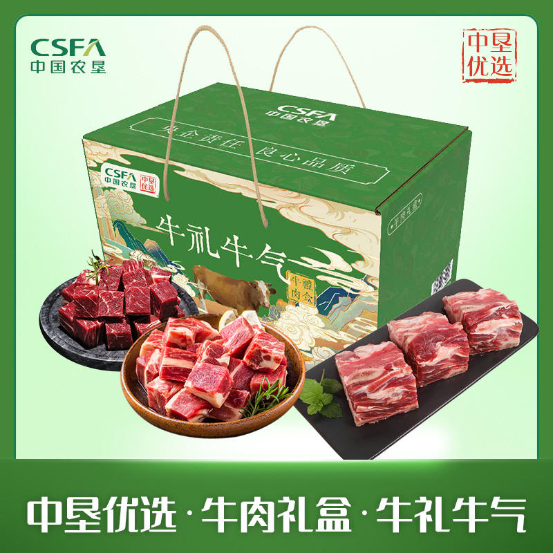 【老兵创业】中垦飨味堂·牛肉礼盒·牛礼牛气2kg 牛肉筋500g*1牛肉块500g*1牛脊骨段500g*2