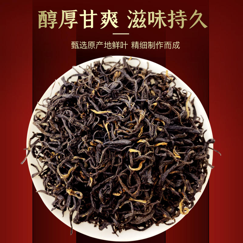 条索紧细匀整,色泽乌黑油润,金毫显露,甜香高长,汤色红浓明亮,滋味甘鲜醇厚,叶底嫩匀红亮。