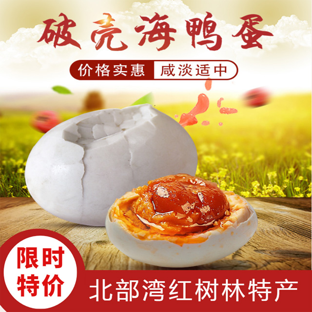 品牌【老兵创业】广西北部湾红树林破壳海鸭蛋50~80g凹壳红心流油多品牌熟咸鸭蛋
